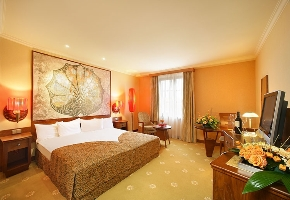 Elegant rooms of 25 sqm with king size bed, spacious bathroom with bath tub, comfortably designed working desk, complimentary high speed internet, tea and coffee making facilities, flat screen, satellite TV/pay TV, in-room iron and board, safe and minibar. Hotel is fully accessible for wheelchairs. Complimentary fitness / sauna. |